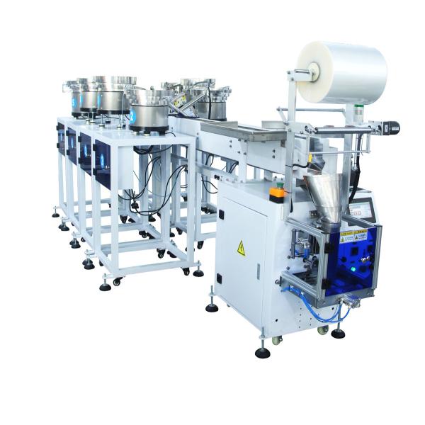 1) Technical characteristics 1. Automatic filling, automatic packing, sealing function, output count. 2. Adopt intelligent temperature control system, stable temperature control, temperature can be adjusted according to needs. 3. The length of the bag can be adjusted, the total amount of the package can be adjusted, and the automatic alarm can be reached when the set number of times is reached. 4. After packing, the bag is uniform, neat, beautiful and firm. It can also be equipped with coding machine, check weighing, labeling machine, hoist and other expansion equipment. 2)Scope of application and functional features 1.This product is suitable for automatic mixing or individual packaging of the following 7 materials, such as screws, nuts, plain washers, spring washers, toys, standard parts, etc. After automatic counting of the vibrator bowl, the product will be filled into the box for automatic packaging, or other materials can be put into the mixed packaging manually by using the spare space of the equipment. 2.It is suitable for "OPP/CPP/ lamination film" as sealing material.
